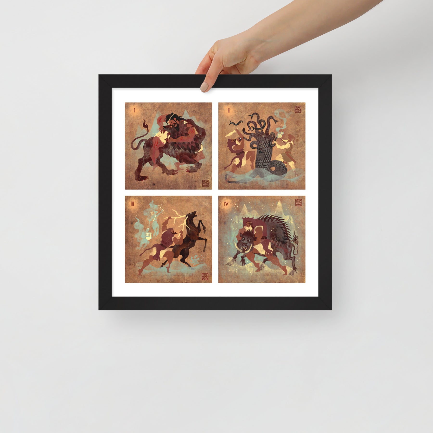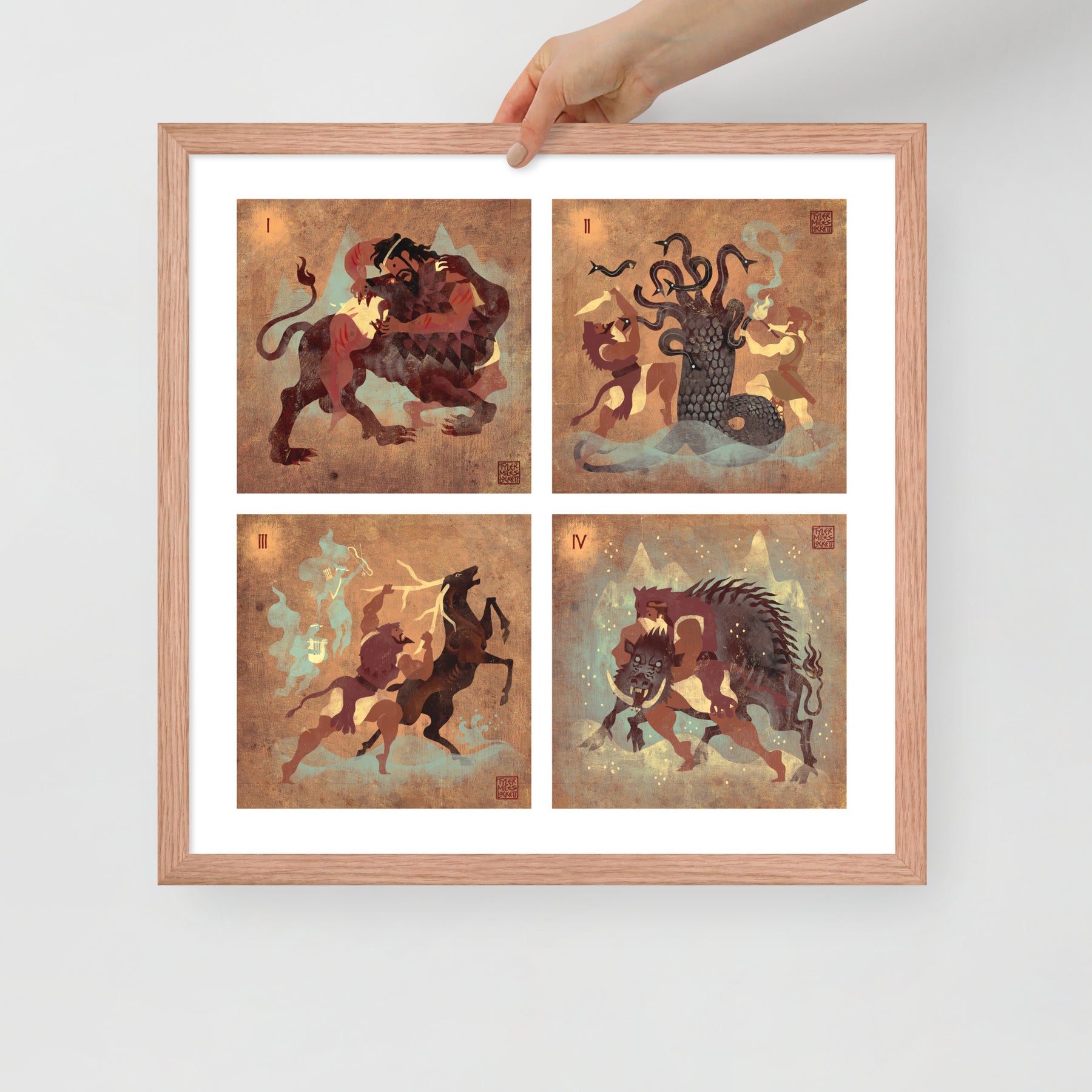 Each framed print is a museum-quality giclée, produced on thick archival matte paper with fade-resistant inks for timeless color and detail. Protected by a lightweight Acrylite front and set in a matte Ayous wood frame from renewable forests, it arrives ready to hang with included hardware. Crafted to order, these prints combine sustainability with lasting elegance; art built to endure like the myths they carry.