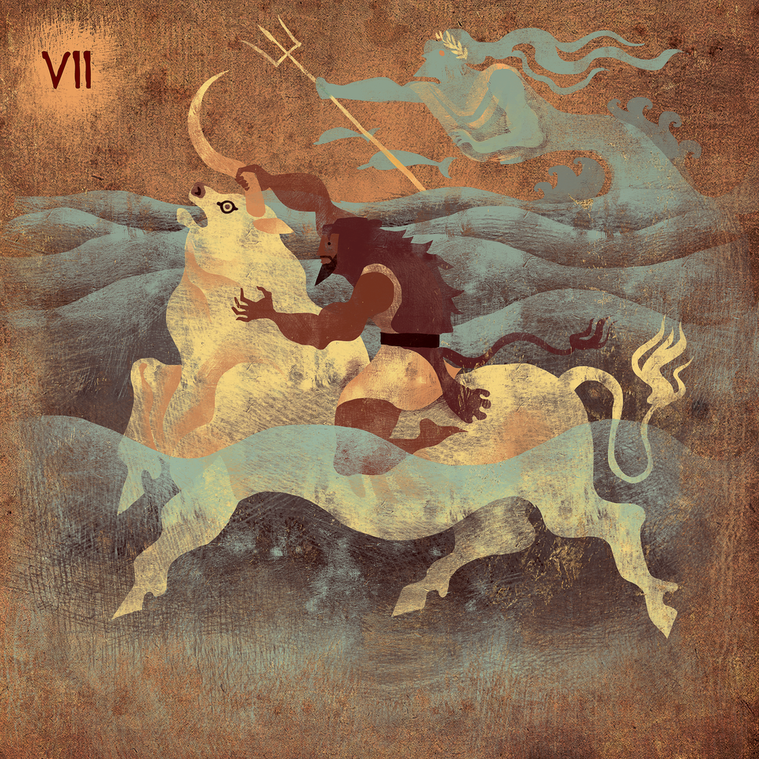 I sail to Crete to capture Poseidon’s white bull, born from divine defiance and monstrous legacy. Wrestling it to the ground, I ride the beast across the sea until I reach Tiryns. Eurystheus orders it released, and it escapes to Marathon, where Theseus will one day face it. The gods weave every deed into a larger fate beyond my knowing.