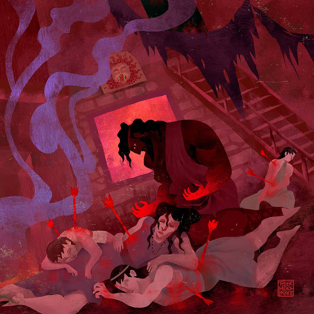Peace turns to horror when Hera sends madness to seize my mind. In a frenzy, I slay my own wife and sons, and when clarity returns, I see my hands stained with their blood. Desperate for purification, I seek the Oracle of Delphi, who renames me Heracles, meaning the glory of Hera. My sentence is clear, twelve labors to cleanse my miasma through suffering.