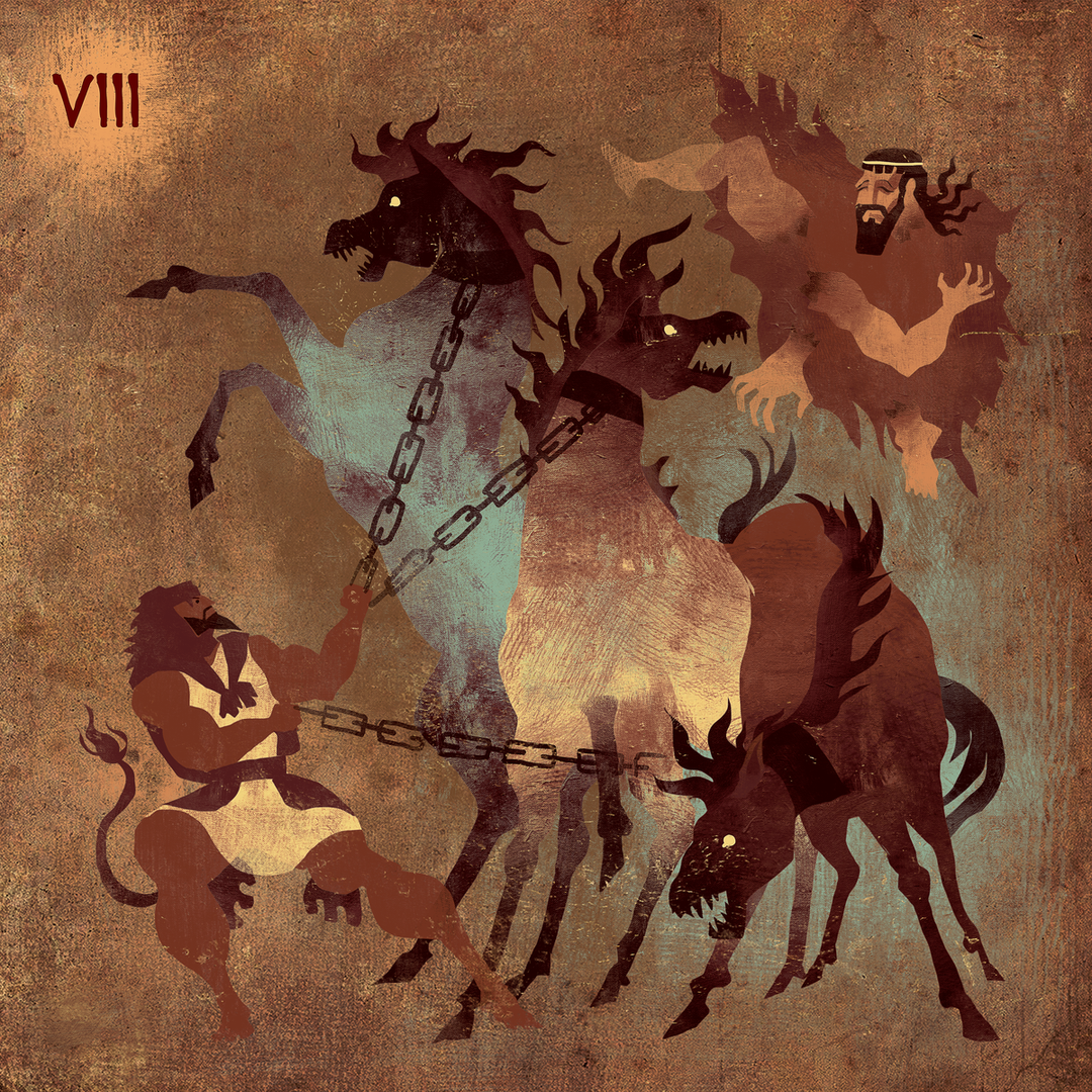 In Thrace, I steal the flesh-eating mares of King Diomedes, who feeds them human victims. When they kill my companion Abderus, I avenge him by feeding their master to his own beasts. The mares are set free, their hunger sated at last. Some labors demand cruelty to end cruelty.
