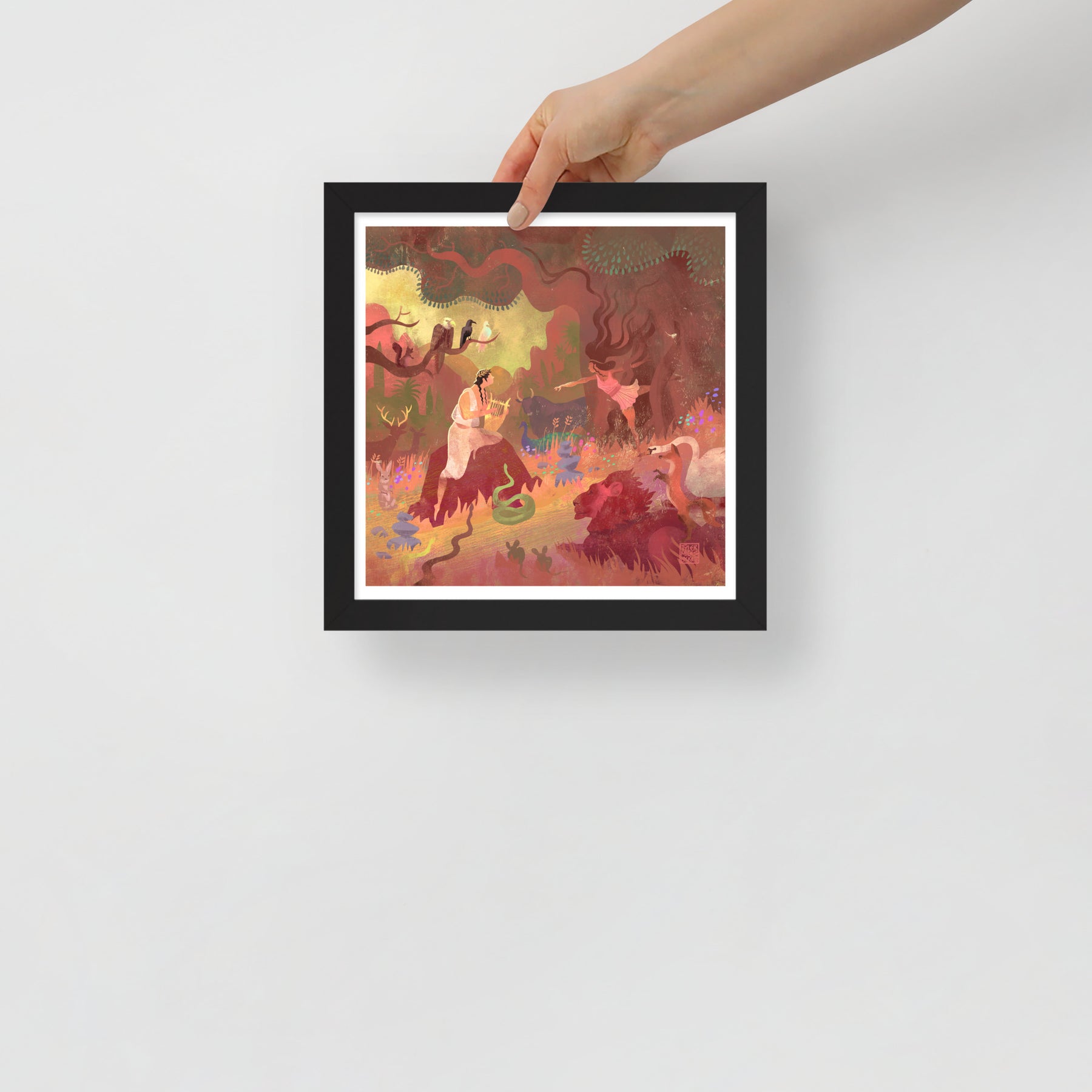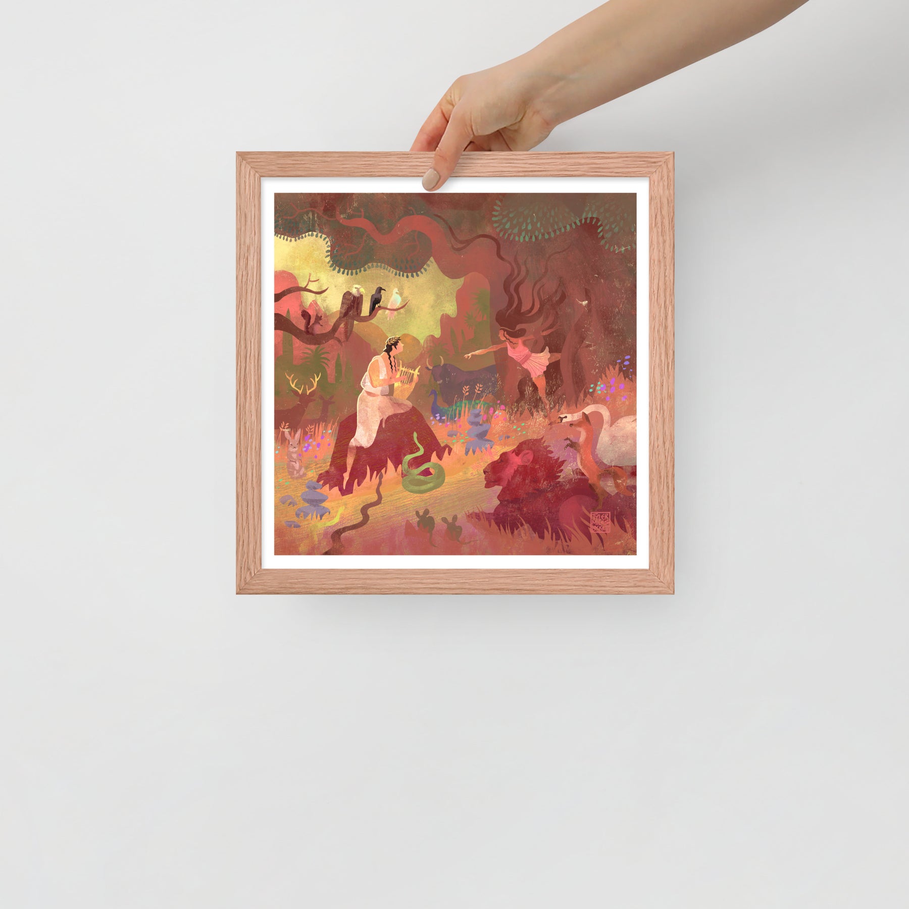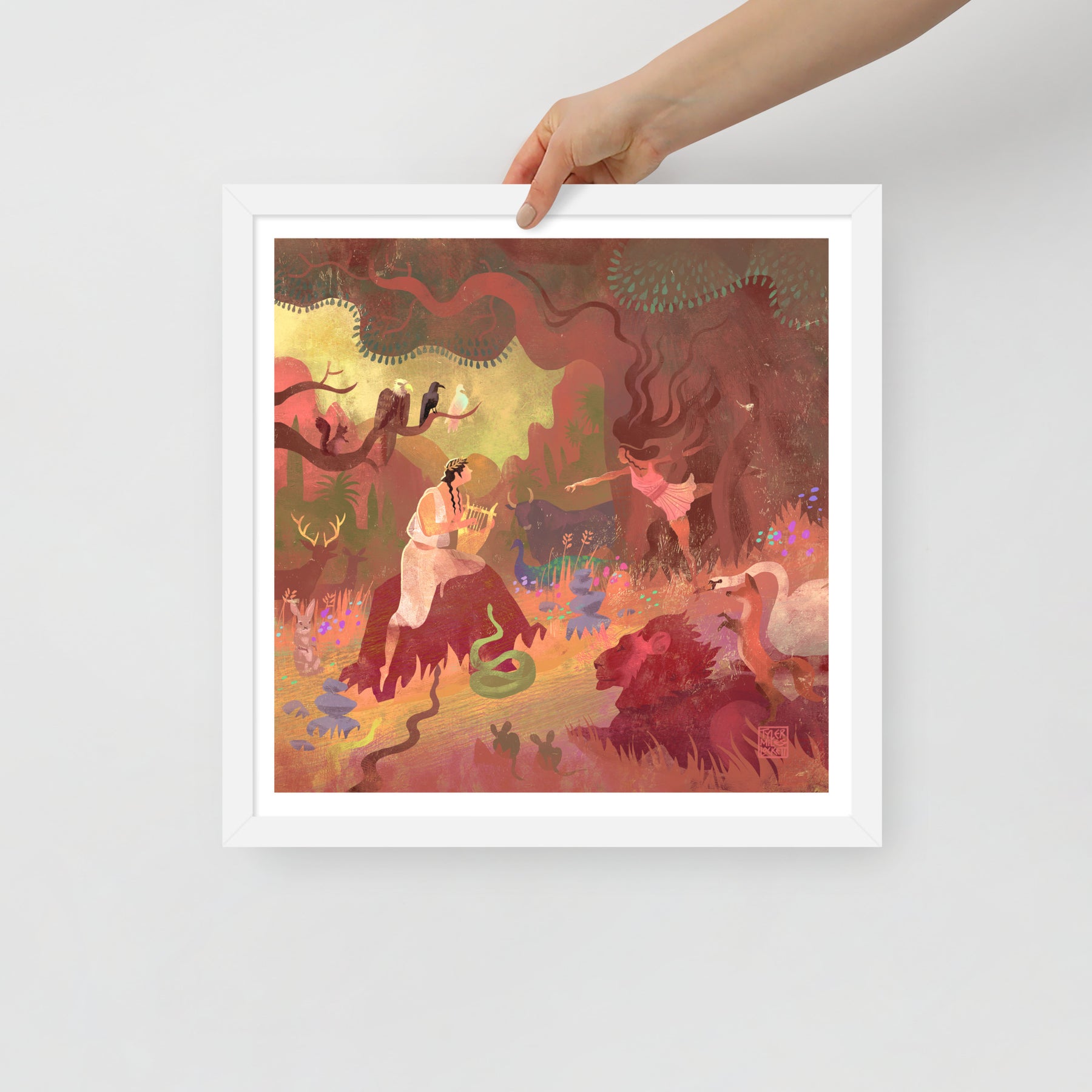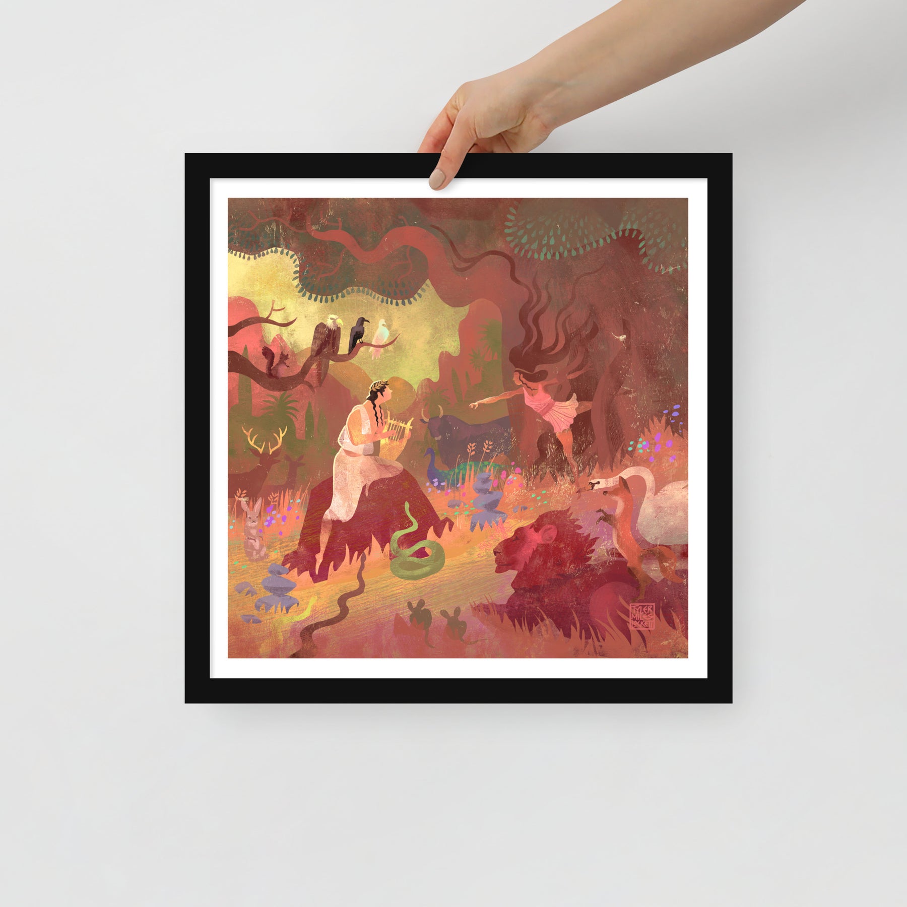 In the forest’s dappled light, I play my lyre and the wild beasts fall still, entranced by melody. From the oak trees steps Eurydice, a nymph of radiant grace, drawn by my music as if by destiny. Our hearts entwine in harmony, and we are wed beneath the open sky. But joy fades quickly, for the Fates have little mercy for love.