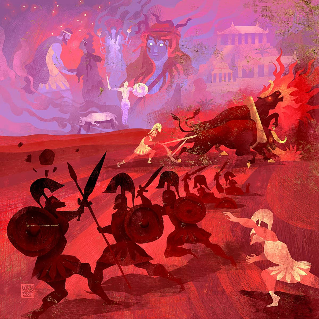 I, Jason, lead Greece's greatest heroes; the Argonauts, through perilous seas, facing giants, cursed kings, and fire-breathing beasts to claim the Golden Fleece. With Medea's magic and my cunning, the Gods grant me my prize; yet the final cost lurks in the shadows ahead. Our journey begins now...