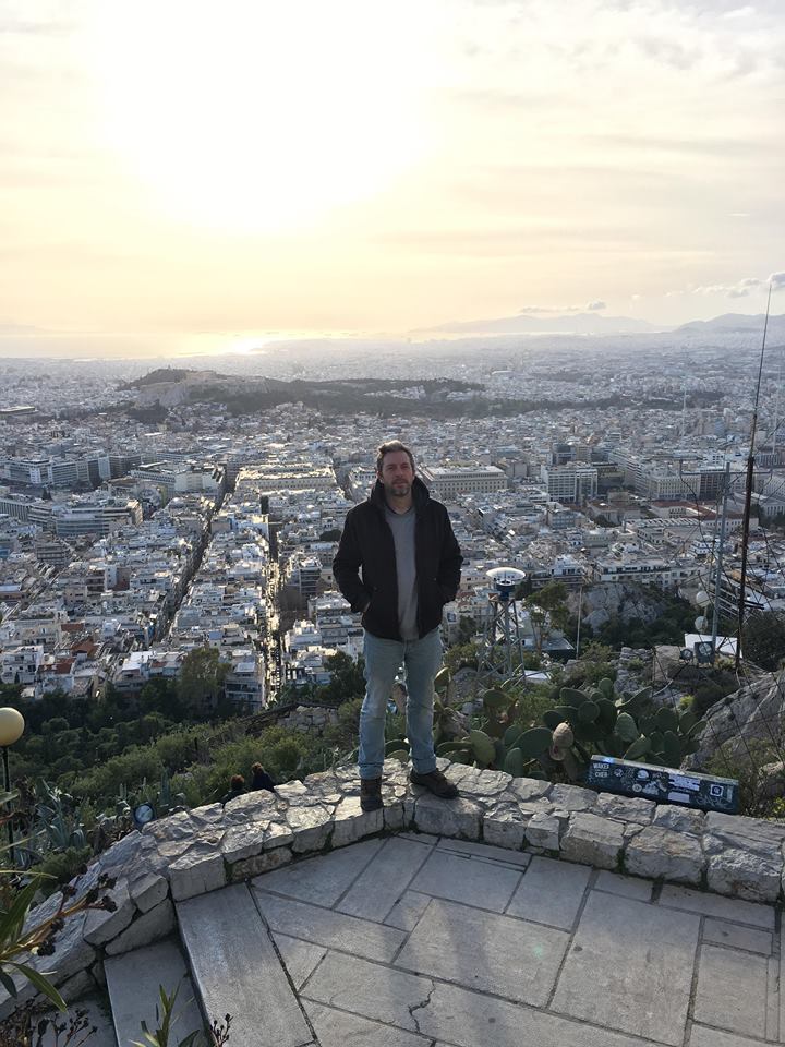 This photo was taken off me at the top of Lycabettus hill after a healthy hike. You can see Athens city stretching off to the coast in the background.