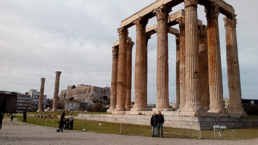 here we are standing and dwarfed before the massive columns of the temple of Olympian Zeus; a short walk from the city center. Construction started in the 6ht century BC and wasn't completed for another 600 years. Hard not to be impressed with the scale of this one!
